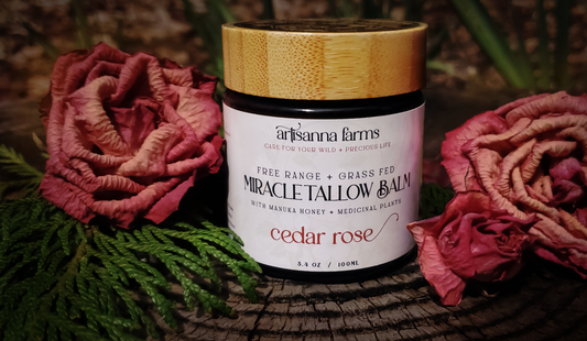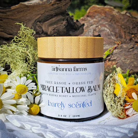 This handmade tallow balm is amazing-it soaks in without being greasy and keeps my skin really hydrated with a nice, natural glow. The medical-grade manuka honey helped calm my poison oak, which I really appreciated. I love that it's so nutrient-rich and concentrated, making this jar feel like it will last forever. I'll be grabbing another one soon. - Ashley Matthews, Willits, CA