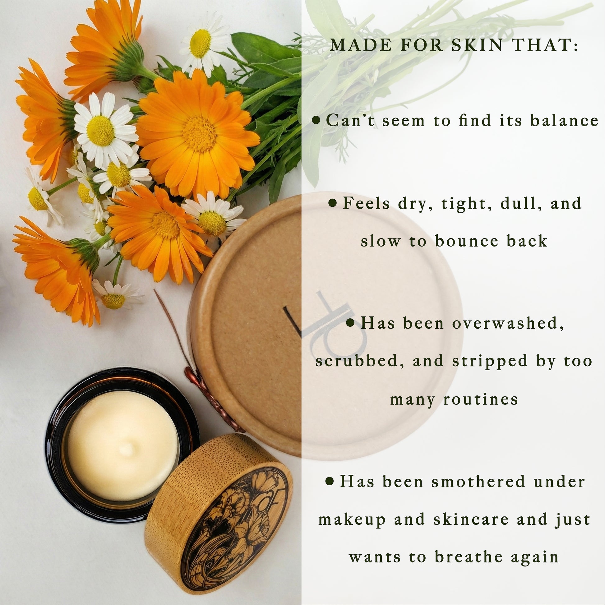 A gentle herb that calms irritation, soothes sensitive skin, and soothes while brightening your complexion for a natural glow. |
